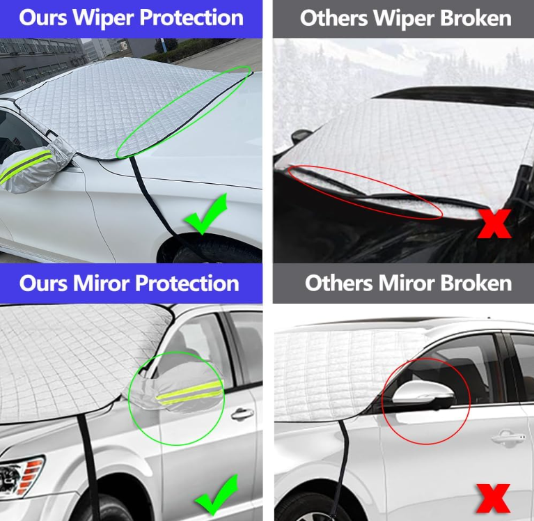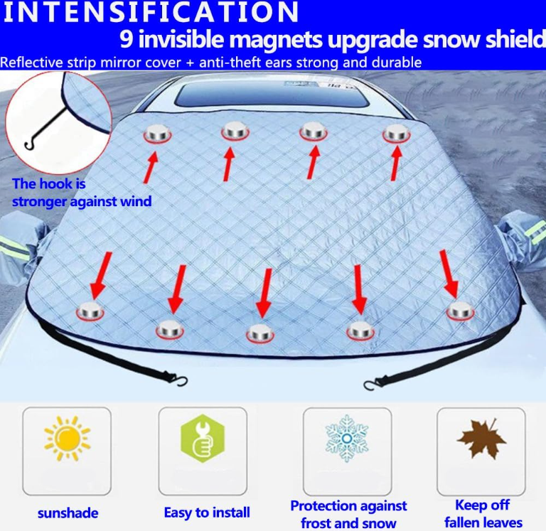 Wake up to a clear windshield, no scraping required. This upgraded windshield cover blocks snow, ice, rain, and frost before they can touch your glass β keeping your mornings fast, clean, and stress-free. Built with durable, multi-layer protection that stays secure in any weather, it shields your car year-round so you can simply remove, fold, and drive.